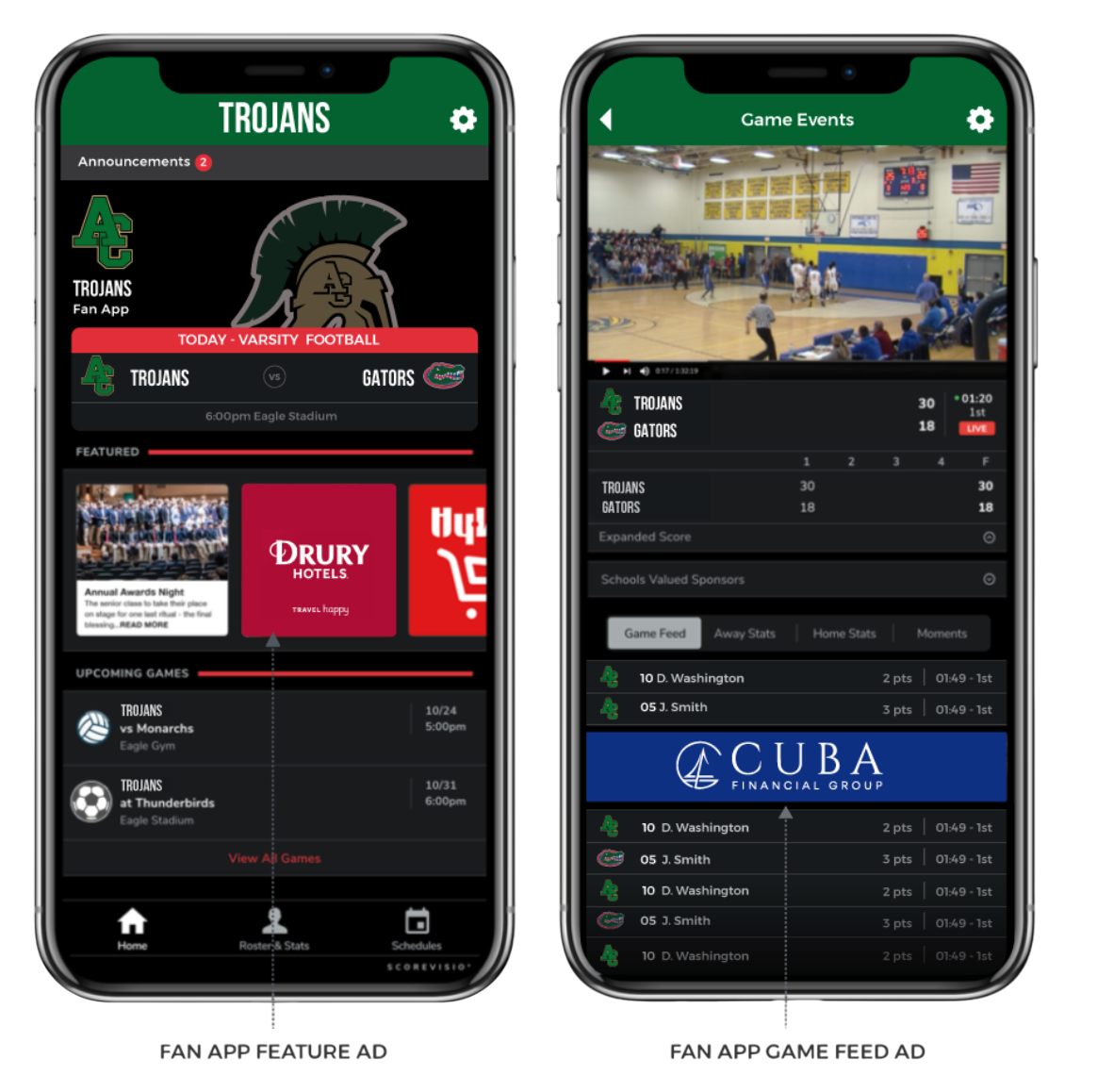 All packages include exposure for your brand throughout the school year at varsity, and junior varsity games for a variety of sports including football, basketball, and volleyball.